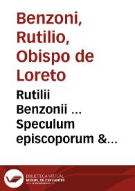 Rutilii Benzonii ... Speculum episcoporum & curatorum : in quo de fuga in peste, fame et bello per tres libros doctissimè disseritur... ; accuratè quoque ibidem, de ecclesia, de miraculis, de sacrae lauretanae aedis angelica transuectione ... ; adiecti sunt quinq[ue] indices