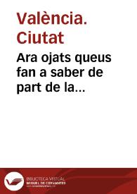 - Ara ojats, queus fan asaber de part dels ... Iusticia, y Iurats de ... Valencia. Con ses Señories ha[n] tengut certes noticies. q[ue] ... Alexandre Sete ... es estat servit de collocar en lo numero del Sants, al dit Beato Sant Thomas de Villanova ...