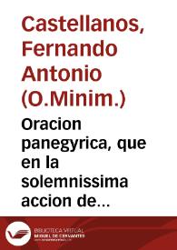 Oracion panegyrica, que en la solemnissima accion de gracias, que el dia 24 de junio de 1741 hizo ... Don Simon de Espinosa de los Monteros y Valdiuia ... por la exaltacion, que hizo la catholica magestad de nuestro monarca ... Philipo V ... al Consejo de su Real Cámara... / dixola el Padre Fr. Fernando Antonio Castellanos, del mismo sagrado Orden de Minimos...