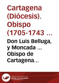 - Carta pastoral que el ... Cardenal Belluga, Obispo de Cartagena ... escrive desde la Corte de Roma para el Cabildo de su Santa iglesia Cathedral ... y para todos los fieles de su Diocesi, con motivo de ... la Renuncia que tiene hecha de su Obispado