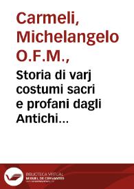 Storia di varj costumi sacri e profani dagli Antichi fino a noi pervenuti divisa in due tomi / del padre Carmeli... ; tomo secondo