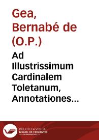 Ad Illustrissimum Cardinalem Toletanum, Annotationes in Evangelia totius anni de tempore & Sãctis ex omni in uniuersum quae hucusque extat doctrina admodum R.P. Magistri F. Ludouici Granatensis... / fratre Barnaba à Xea ... collectore. Apophtegmata etiam, insigniora, dicta & facta gentilium ... adiecta sunt...