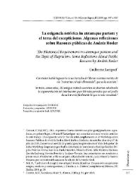 - La exigencia retórica in utramque partem y el tema del escepticismo. Algunas reflexiones sobre "Razones públicas" de Andrés Rosler / Guillermo Lariguet