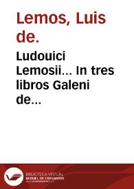 Ludouici Lemosii ... in tres libros Galeni de naturalibus facultatibus commentarij