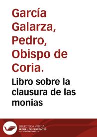 Libro sobre la clausura de las monias / compuesto por ... Garcia de Galarça ,obispo de Coria ...