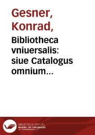 Bibliotheca vniuersalis: $s siue Catalogus omnium scriptorum locupletissimus, in tribus linguis, Latina, Graeca, & Hebraica ... / authore Conrado Gesnero ...