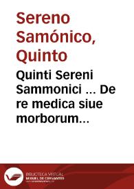 Quinti Sereni Sammonici ... De re medica siue morborum curationibus liber tum elegans tum humanae saluti perquàm utilis, & diligenter emendatus ; item Gabrielis Humelbergij Rauenspurgensis ... in Q. Sereni librum medicinalem, commentarij