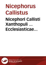 Nicephori Callisti Xanthopuli ... Ecclesiasticae historiae libri decem & octo… / opera uerò ac studio ... Ioannis Langi ... è graeco in latinum sermonem translati