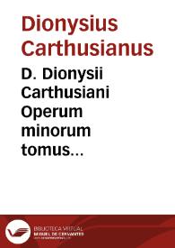 D. Dionysii Carthusiani Operum minorum tomus primus...