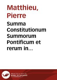 Summa Constitutionum Summorum Pontificum et rerum in Ecclesia Romana gestarum à Gregorio IX vsque ad Sixtum V / nunc primùm ... conquisita & concinnata ... ac commentariis elucubrata ... per Petrum Matthaeum...