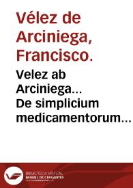 Velez ab Arciniega... De simplicium medicamentorum collectione, electione, praeparatione ac repositione : cum simplicium Mesues comentariis ac nonnulis compositis liber...