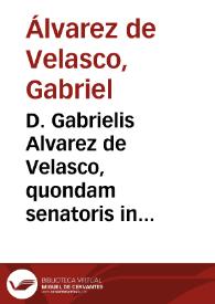 D. Gabrielis Alvarez de Velasco, quondam senatoris in Regia Cancellaria noui Granatensis regni ... Epitoma de legis humanae, mundique fictione, veritatis diuinae, aeterni, temporalisque differentia