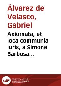 Axiomata et loca communia iuris a Simone Barbosa quondam deprompta facie postmodum ... : ab Augustino Barbosa transcripta ... : nunc multis super additis / auctore ... Gabriele Albarez de Velasco ...