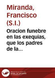 - Oracion funebre en las exequias, que los padres de la Compañia de Jesus de Zamora al trasladarse a su nueua casa, consagraron a la memoria de ... D. Francisco Zapata Vera y Morales, obispo de dicha ciudad / dixola el RR. P. M. Francisco de Miranda, de la Compañia de Jesus ...; sacanla a luz los mismos padres de la Compañia de Jesus de Zamora; y la dedican al ... Joseph Gabriel Zapata, obispo de la misma ciudad...