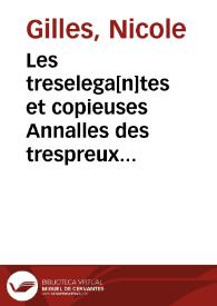 Les treselega[n]tes et copieuses Annalles des trespreux, tresnobles, treschrestie[n]s [et] excellens moderateurs des Belliqueuses Gaules ... / Copìlees par ... maistre Nicole Gilles ...