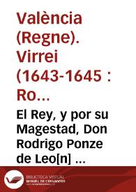 El Rey, y por su Magestad, Don Rodrigo Ponze de Leo[n] ... Virey ... deste Reyno de Valencia, por quanto por los sucessos de los tiempos se halla la milicia efectiva desta Ciudad ... en estado tal, que sino se aplican los remedios tan eficazes ...