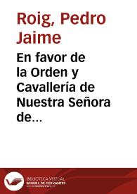 En favor de la Orden y Cavallería de Nuestra Señora de Montesa y San Iorge de Alfama. Contra los Monjes y Conuento de Santas Cruzes, de la Orden del Cistel en el Principado de Cataluña / por el Dotor Frey Pedro Iayme Roig ...