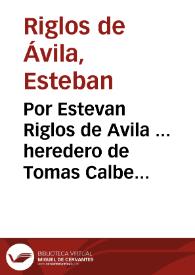 - Por Estevan Riglos de Avila ... heredero de Tomas Calbet, y legitimo administrador de sus hijos, llamados a la misma herencia. Con el clero, y capellanes de la Paroquial [sic] de Santa Caterina Martir de la Ciudad de Valencia : Alegación en hecho, y drecho que escrive el Dotor Lauriano Martinez de la Vega ... en prueua de las nulidades que alega de una sentêcia dada por el Ordinario Ecclesiastico en el año de 1635 y de cinco cargamientos de censo que en su execucion firmaron a favor del Clero, los albaceas testmentarios de Tomas Calbet, en la fundacion de vn Beneficio, y Anual que por los años de 1637 fundaron en dicha Iglesia