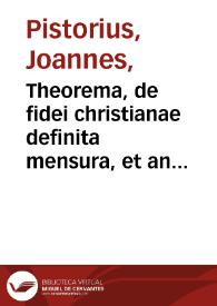 Título Theorema, de fidei christianae definita mensura, et an haec sit sola Scriptura canonica, cum episagmate, de sacramentis... contra Grynaeum... / defendet... Ioannes Pistorius...