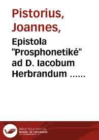 Título Epistola \"Prosphonetiké\" ad D. Iacobum Herbrandum ... ne de praelio hilariter commisso turpiter fugiat, ne que per magistellos, administros scurrilis libidinis pugnandum existimet... / scripta a Ioanne Pistorio Nidano...