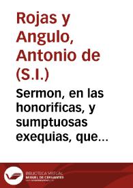 Sermon, en las honorificas, y sumptuosas exequias, que la Santa Iglesia Cathedral de Cadiz celebrò à la memoria de ... Antonio de Ibarra ... el dia 27 de março de 1691 / predicado por el doct. d. Antonio de Roxas y Angulo...