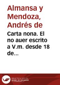 Carta nona. : El no auer escrito a V.m. desde 18 de Março las nueuas assi destos Reynos, como de los estrâgeros, segun se platican en esta Corte ... De Madrid 16 de Nouiembre 1622