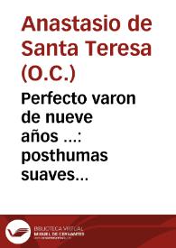 Perfecto varon de nueve años ... : posthumas suaves memorias de ... D. Francisco Feliz Joseph de Pareja Obregon y Chacon... / delineaba tan exemplar estampa el M.R.P.Fr. Anastasio de Santa Theresa, carmelita...
