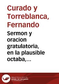 Sermon y oracion gratulatoria, en la plausible octaba, que se celebrò en la muy noble, ciudad de Luzena, à las canonizadas glorias de S. Francisco Solano, y San Jacome de la Marca / dixo ... el doctor don Fernando Curado y Torreblanca; sacalo a luz ... el mismo venerable, y ilustre clero...