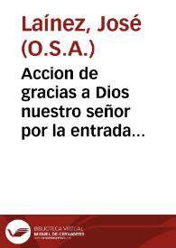 - Accion de gracias a Dios nuestro señor por la entrada triunfal en la ciudad de Lerida : trofeo esclarecido de la augustissima piedad de nuestro inclito monarcha Filipe IV ... / que predicò en San Martin, Orden de San Benito ... Fray Ioseph Laynez, Obispo electo de Solsona ... de la Orden del glorioso patriarca San Agustin.