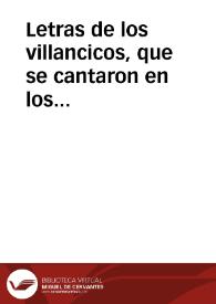 Letras de los villancicos que se cantaron en los Solemnes Maytines del Sagrado Nacimiento de Nuestro Redentor Iesu-Christo, en la Santa Iglesia Metropolitana y Patriarchal de Sevilla / compuestos por don Pedro Rabassa ..