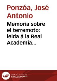 Memoria sobre el terremoto : leida á la Real Academia Médica de Murcia en la sesion de 22 de mayo de 1815 / por D. José Antonio Ponzóa ..
