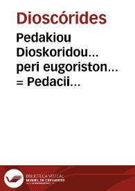 Pedakiou Dioskoridou... peri eugoriston... = Pedacii Dioscoridis Anazarbei De facile parabilibus tam simplicibus quam compositis medicamentis, ad Andromachum libri duo / interprete Iano Antonio Saraceno...