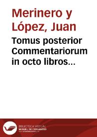 - Tomus posterior Commentariorum in octo libros Aristotelis De physico auditu, seu auscultatione : continens sex posteriores libros, una cum disputationibus, et quaestionibus hoc tempore agitari solitis iuxta Subtilis Doctoris Ioannis Duns Scoti mentem... / auctore ... D. Fratre Ioanne Merinero...