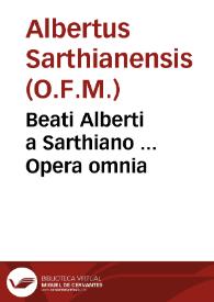 Beati Alberti a Sarthiano ... Opera omnia / in ordinem redacta, ac argumentis et adnotationibus illustrata a F. Francisco Haroldo...; quibus praemittuntur Gesta Beati Alberti ab eodem collecta et conscripta...