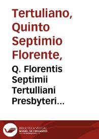 Q. Florentis Septimii Tertulliani Presbyteri Carthaginiensis Liber de praescriptionibus contra haereticos / scholiis et notis illustratus per F. Christianum Lupum, Iprensem...; eius operum tomus nonus; studio ac labore F. Thomae Philippini Rauennatensis...