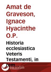 - Historia ecclesiastica Veteris Testamenti, in rem theologiae candidatorum... : opus in tres tomos distributum... / auctore Fr. Ignatio Hyacintho Amat de Graveson... ; [tomus primus]