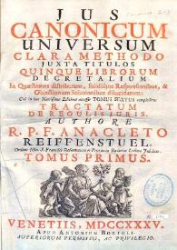 - Jus canonicum universum : clara methodo juxta titulos quinque librorum Decretalium : in quaestionum distributum, solidisque responsionibus & objectionum solutionibus dilucidatum : cui in hac novissima editione accessit tomus sextus complectens Tractatum de regulis juris. Volumen I / authore R.P.F. Anacleto Reiffenstuel ...