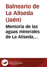 Memoria histórico-clínica de las aguas minero-medicinales de La Aliseda / por Antonio Espinosa y Gómez.