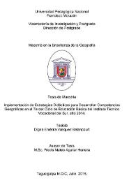Implementación de estrategias didácticas para desarrollar competencias geográficas en el Tercer Ciclo de Educación Básica del Instituto Técnico Vocacional del Sur, año 2014 / Digna Emérita Vásquez Betancourt; asesor de Tesis, M. Sc. Fredis Mateo Aguilar Herrera