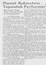 Pianist Rubinstein Topnotch Performer : Reviewer Says Past Artists Fade In Comparison