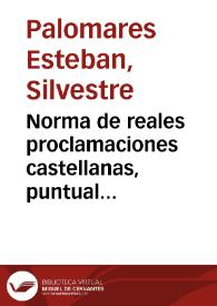 Norma de reales proclamaciones castellanas, puntual solemnidad, y individuales noticias de la que se ha celebrado en Madrid... 11 de septiembre de 1759... a nuestro... Rey... Don Carlos III de Borbón... / según la dispuso el Lic. Don Sylvestre Palomares Estevan