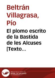 El plomo escrito de la Bastida de les Alcuses [Texto impreso] : (Mogente)