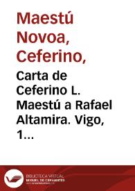 Carta de Ceferino L. Maestú a Rafael Altamira. Vigo, 1 de julio de 1910