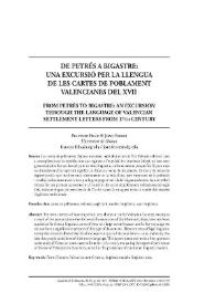 - De Petrés a Bigastre: una excursió per la llengua de les cartes de poblament valencianes del XVII / Francesc Feliu, Joan Ferrer
