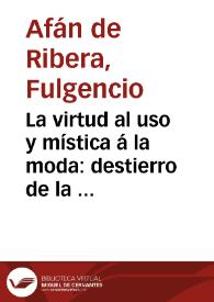 La virtud al uso y mística á la moda : destierro de la hipocresía en frase de eshortacion á ella, embolismo moral / su autor D. Fulgencio Afan de Ribera; asunto y tema de esta obra Don Alexandro Giron, instruyendo á su hijo el hermano Cárlos del Niño Jesus